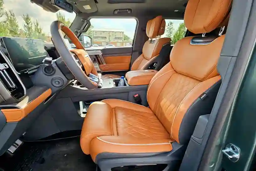 Как и многие другие китайские автомобили, эпатажный M‑HERO не обошли некоторые странные моменты. Например, дверные ручки тут напоминают электромобили Volkswagen ID, а кнопки бесконтактного доступа есть на каждой из них, что хорошо. Однако у всех дверей, кроме багажной, доводчиков нет. Возможно, это сделано специально, чтобы, хлопая тяжелой дверью, вы вместе с пассажирами еще больше прониклись духом брутальности.
