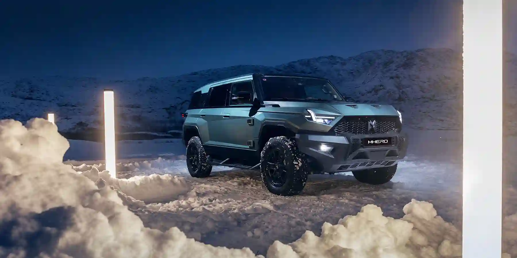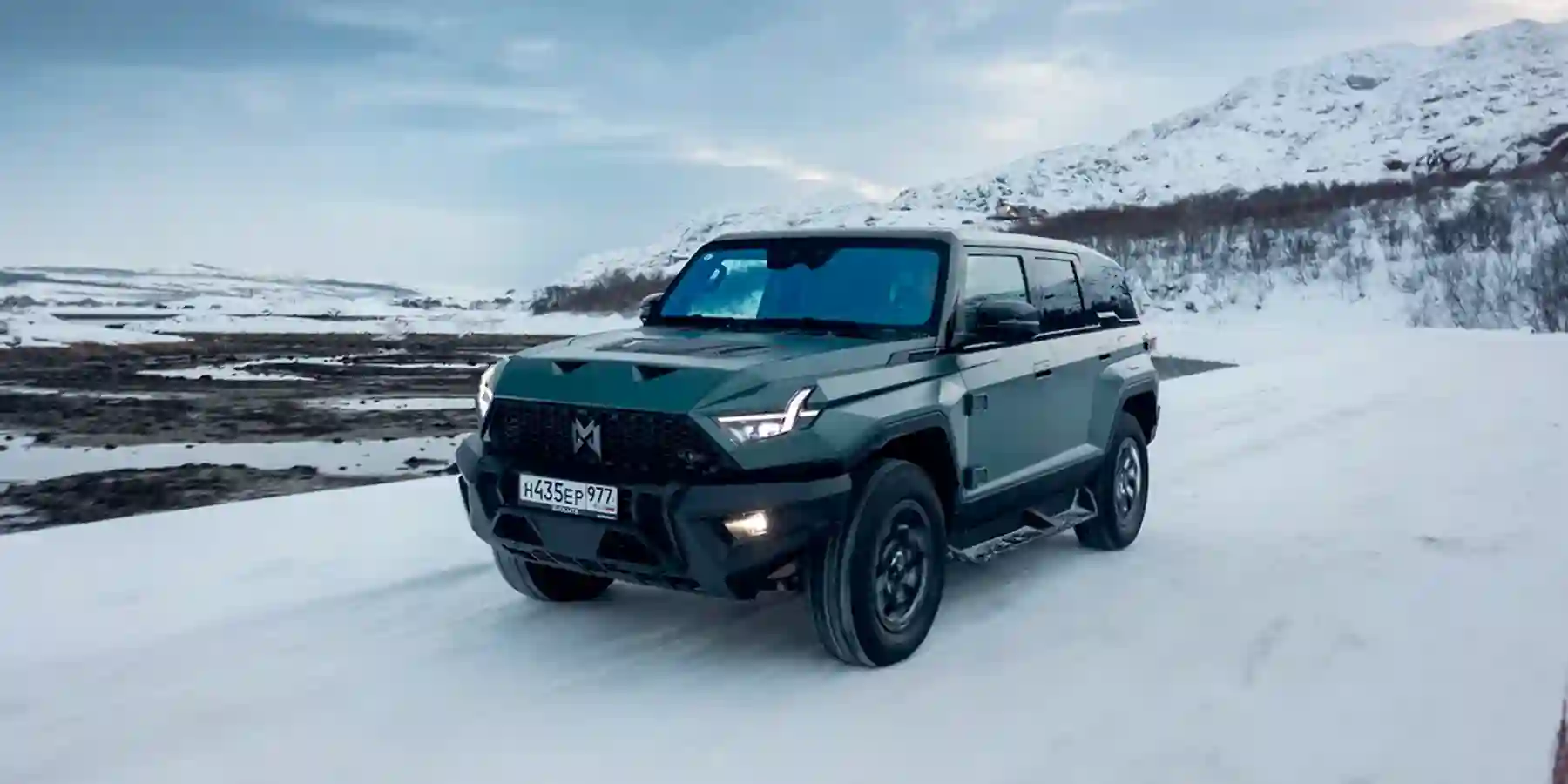 Вообще, объявление о том, что первый тест-драйв M-Hero пройдет именно здесь, да еще зимой, выглядело дерзко. Добраться сюда — это отдельная непростая задача, потому что взять перевал Муста-Тунтури способны далеко не все автомобили. Да и вообще, дороги здесь прокладывались военной техникой для военных нужд и, кажется, никогда не ремонтировались. Помножьте это на зимний холод, сбивающий с ног ветер и непролазный снег. И среди этого поистине русского «великолепия» — премиальный китайский электровнедорожник?