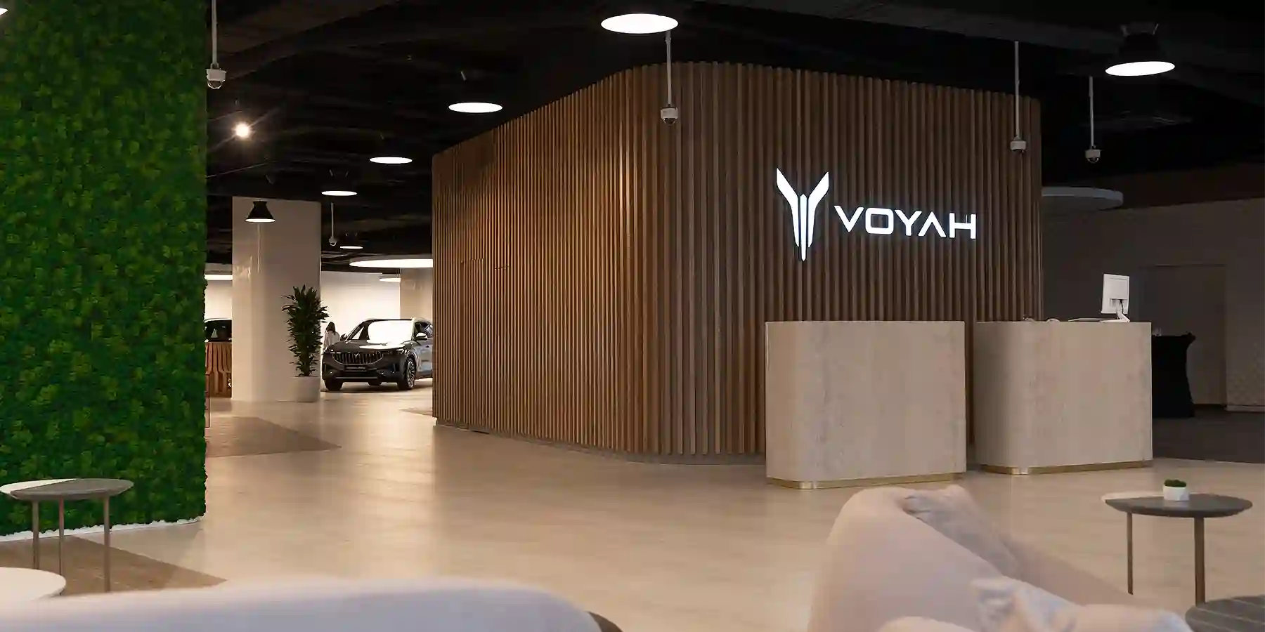 Элегантный бутик построен в соответствии с концепцией международных корпоративных стандартов VOYAH. Светлое, просторное и тихое пространство, пока единственное в стране, создано в новом визуальном стиле VOYAH с целью погрузить клиента в философию бренда. Использованные в отделке природные цвета и материалы, элементы фито-дизайна создают ощущение уюта и словно переносят в атмосферу тропического острова, где человек живет в гармонии с природой, напоминая нам о концепции ESG*, заложенной в основу самого бренда.